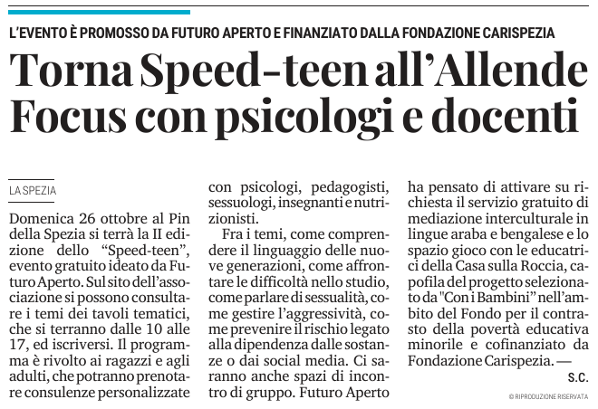 Due tavoli tematici con lo “Speed-teen” di Futuro Aperto